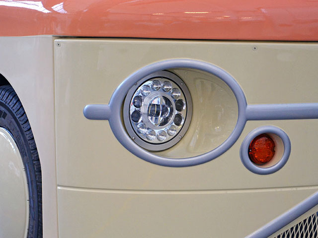 Fiberglass and insulating material sandwich panel with gelcoat colours. Adhesive graphics applied.